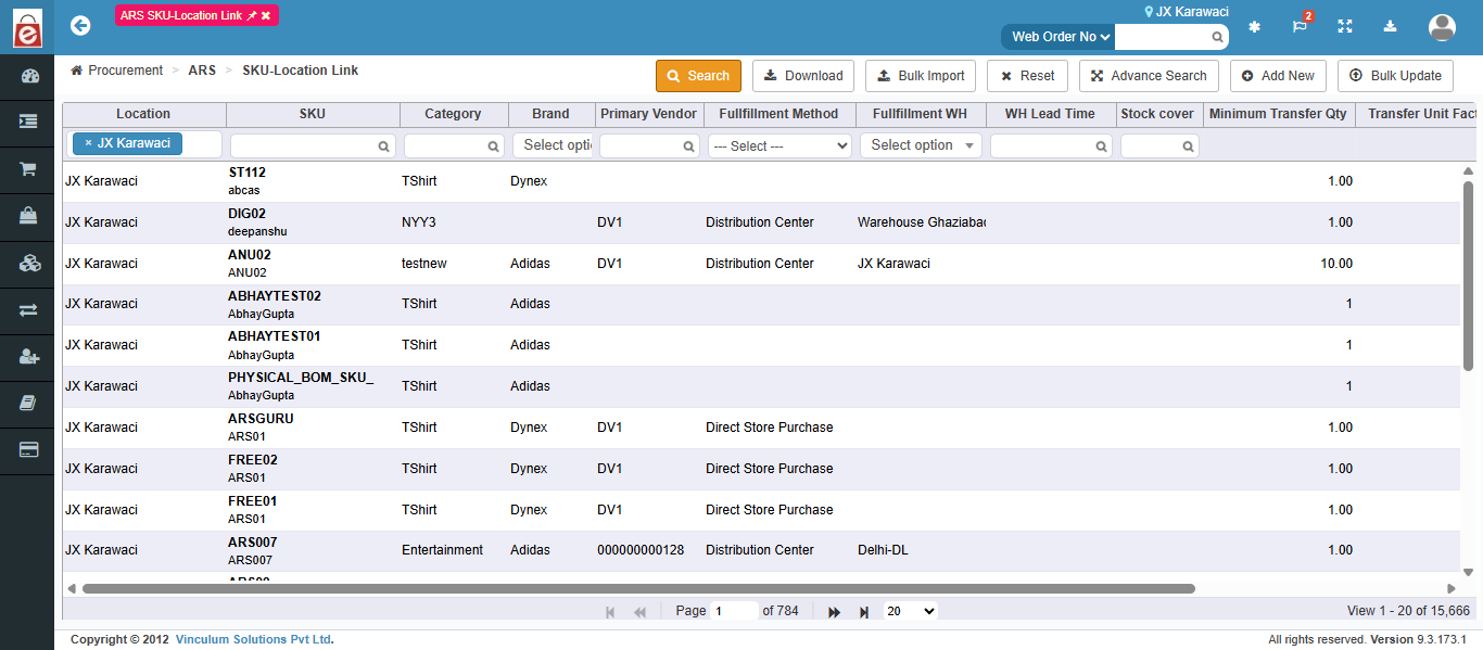 In the ARS (Auto Replenishment System) master setup, when users selected the Fulfilment Warehouse, the system was incorrectly storing the location name instead of the location code at the backend.