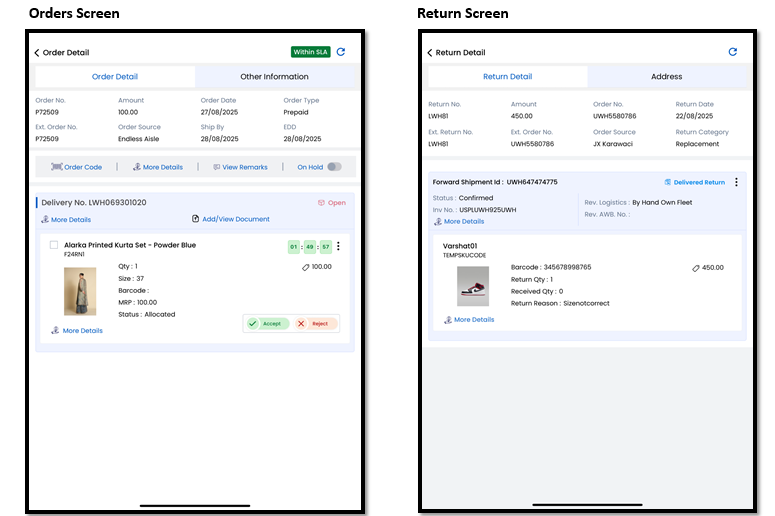 The Order and Return Details screens have been redesigned to deliver superior usability and visual clarity for enhanced productivity.