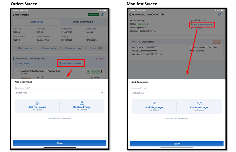 View & Edit: Easily view, update, or replace uploaded documents to keep all order & manifest related information organized and accessible.