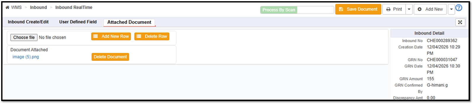 Users can now attach documents during the GRN In-Process stage in inbound.