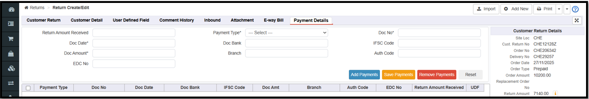 Introduced Payment Details for Return Order
